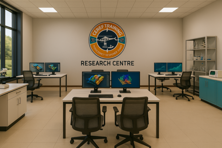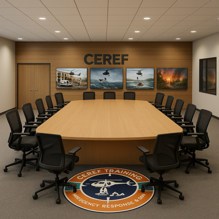 Bathed in a cool blue ambiance and marked proudly with the CEREF Training emblem, the room reflects both precision and professionalism. It stands as a symbol of CEREF’s dedication to cutting-edge education and safety excellence. By combining realism with innovation, this facility empowers emergency responders to refine their decision-making skills, enhance coordination, and strengthen confidence — all essential to saving lives when every second counts.