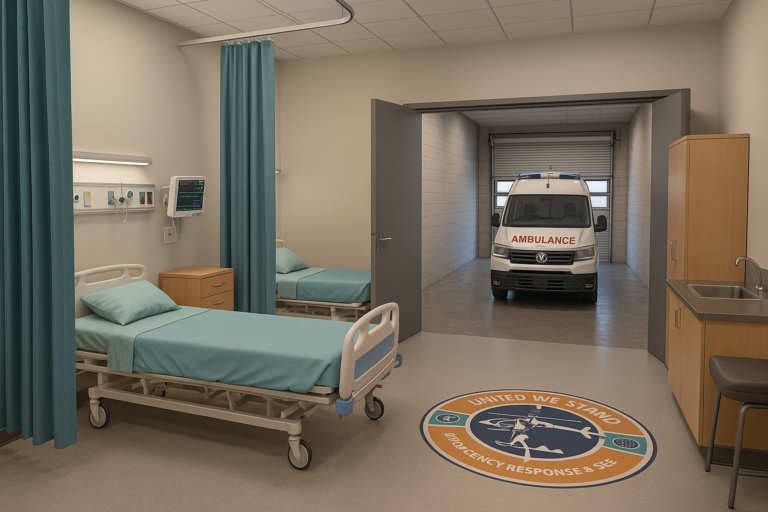 At the forefront, the CEREF Training emblem reinforces the facility’s guiding principle — “United We Stand to Serve Humanity.” This space represents CEREF’s holistic approach to emergency education, combining safety, realism, and compassion. Whether used for medical training, first-aid instruction, or real-time response support, the clinic underscores CEREF’s commitment to preparing responders who can act decisively and effectively when lives are on the line.